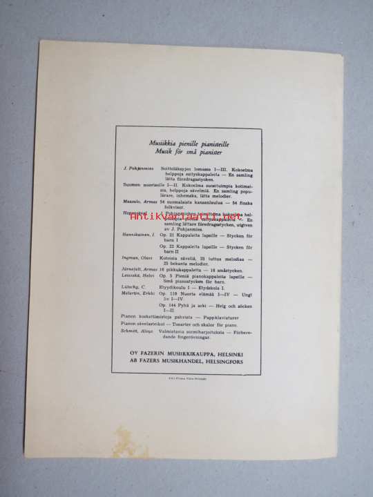 | Saatavilla | 1 kpl | | Sivuja | 20 | | Kunto | K3 | | Sidonta/painoasu | Pienpainate | | Kielet | Suomi, Ruotsi |