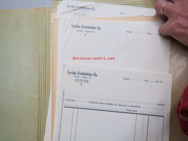 Tyrvään Kenkätehdas Oy - kansiollinen tehtaan lomakkeita & kirjekuoria