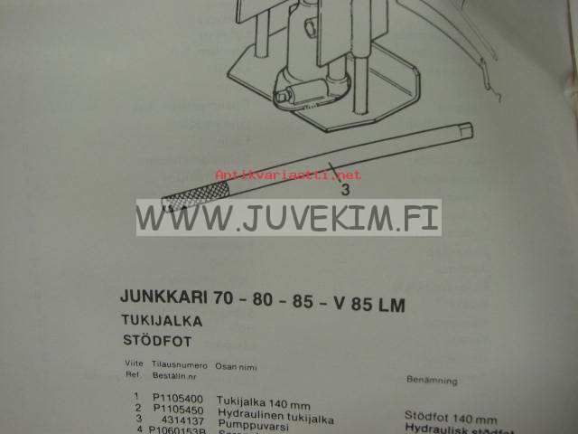Traktoriperävaunu Junkkari 70-80-85-V85LM Traktorsläpvagn -käyttöohje ja varaosakirja / bruksanvisning och reservdelskatalog