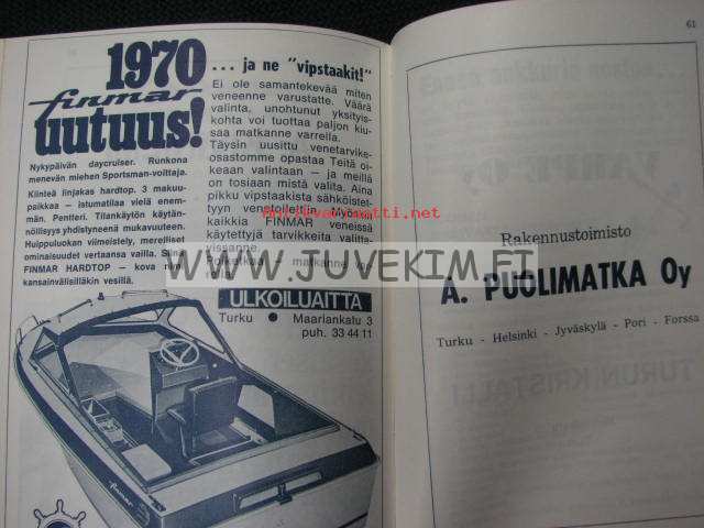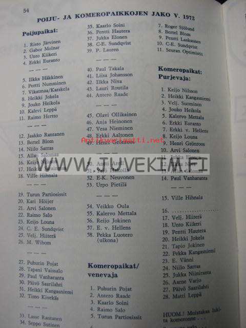 | Saatavilla | 1 kpl | | Julkaisuvuosi | 1972 | | Sivuja | 115 | | Kunto | K3 | | Sidonta/painoasu | Nidottu (pehmeäk.) | | Kielet | Suomi |
