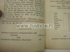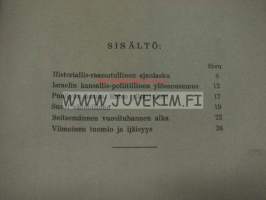 | Saatavilla | 1 kpl | | Julkaisuvuosi | 1918 | | Sivuja | 29 | | Painos | 1. | | Kunto | K2 | | Sidonta/painoasu | Nidottu (pehmeäk.) | | Kielet | Suomi |