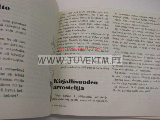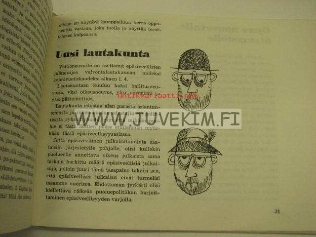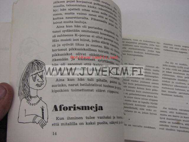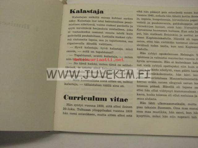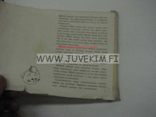 | Saatavilla | 1 kpl | | Julkaisuvuosi | 1960 | | Sivuja | 72 | | Painos | 1. | | Kunto | K2 | | Sidonta/painoasu | Nidottu (pehmeäk.) | | Kielet | Suomi |