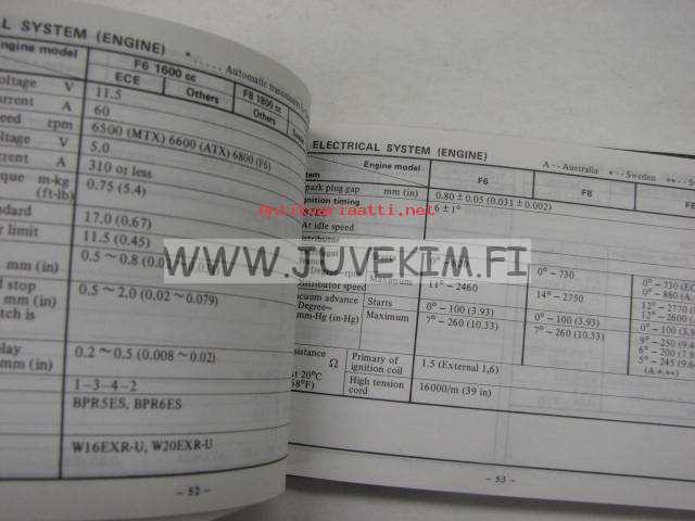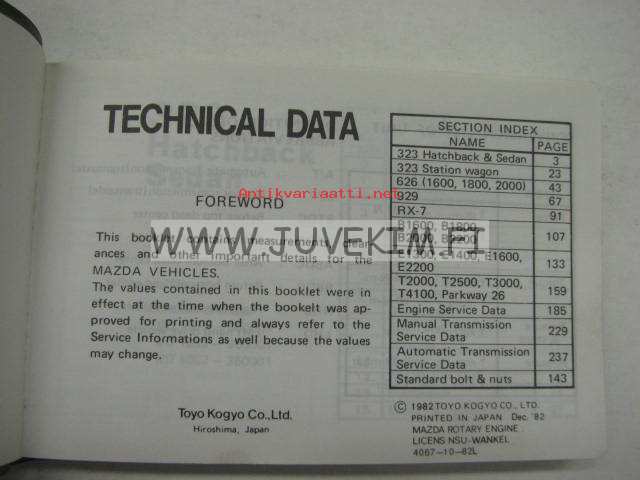 Mazda cars 1982 Technical Data -henkilöautot tekniset tiedot