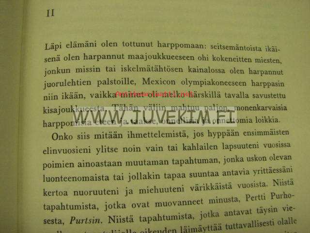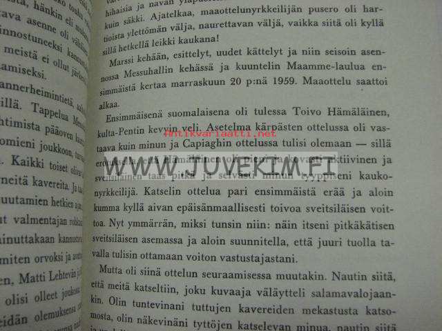 | Saatavilla | 1 kpl | | Julkaisuvuosi | 1970 | | Sivuja | 248 | | Painos | 2 | | Kunto | K3 | | Sidonta/painoasu | Sidottu (kansipaperit) | | Kielet | Suomi |