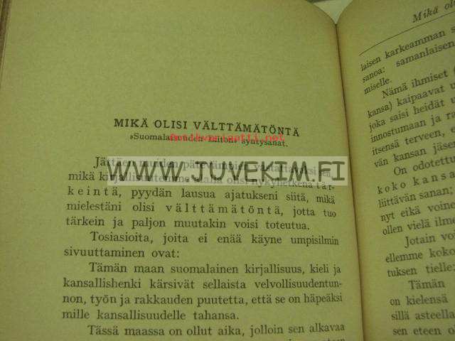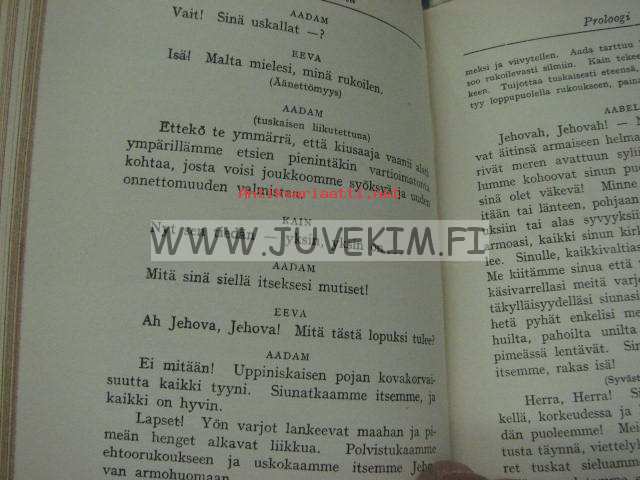 | Saatavilla | 1 kpl | | Julkaisuvuosi | 1927 | | Painos | 9. | | Kunto | K4 | | Sidonta/painoasu | Nahkaselkä | | Kielet | Suomi |
