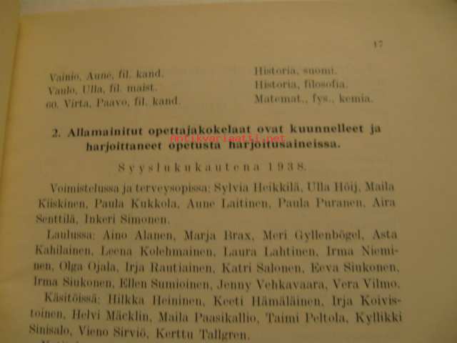 Tyttönormaalilyseo Helsinki 1938-1939