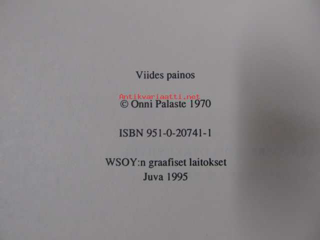 | Saatavilla | 1 kpl | | Julkaisuvuosi | 1970 | | Sivuja | 304 | | Painos | 1 | | Kunto | K3 | | Sidonta/painoasu | Sidottu (kansipaperit) | | Kielet | Suomi |