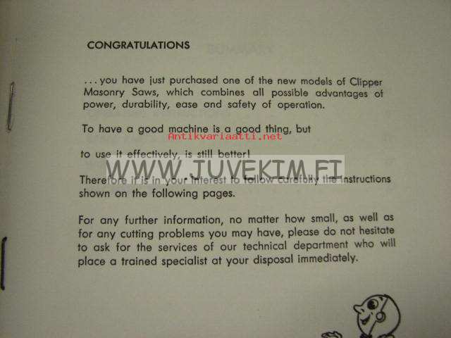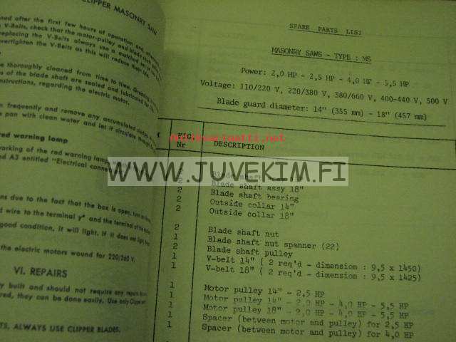 Clipper tiilisaha malli MS -käyttöohjeet, varaosaluettelo