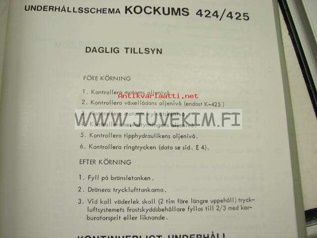 Kockums tipptruck 424-425 Instruktionsbok -käyttöhjekirja ruotsiksi