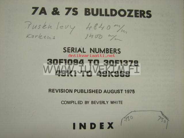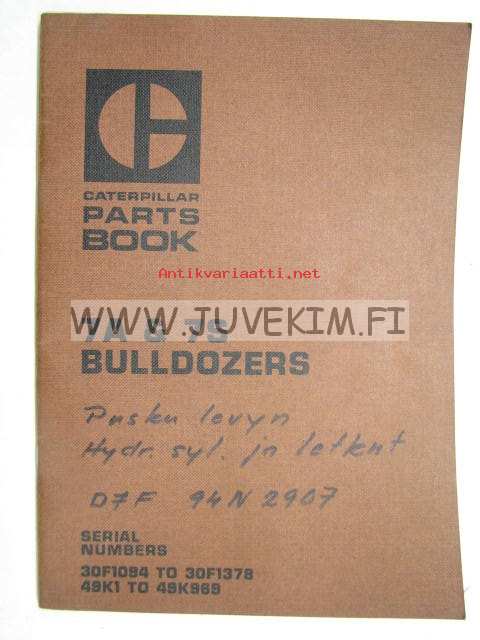 Caterpillar 7A & 7S Bulldozers serial numbers 30F1094 to 30F1378. 49K1 to 49K969 parts book -varaosaluettelo englanniksi