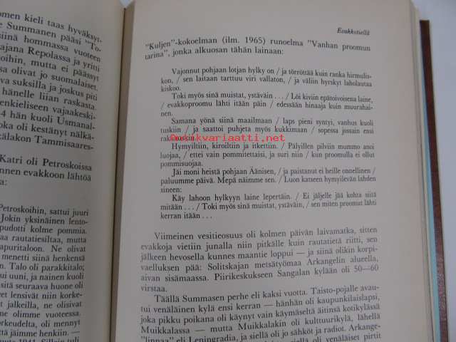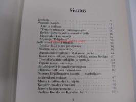 | Saatavilla | 1 kpl | | Julkaisuvuosi | 1981 | | Sivuja | 271 | | Painos | 1. | | Kunto | K3 | | Sidonta/painoasu | Sidottu (kovak.) | | ISBN | 951-35-2430-2 | | Kielet | Suomi |