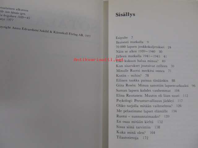 | Saatavilla | 1 kpl | | Julkaisuvuosi | 1977 | | Sivuja | 176 | | Kunto | K4 | | Sidonta/painoasu | Sidottu (kansipaperit) | | Kielet | Suomi |