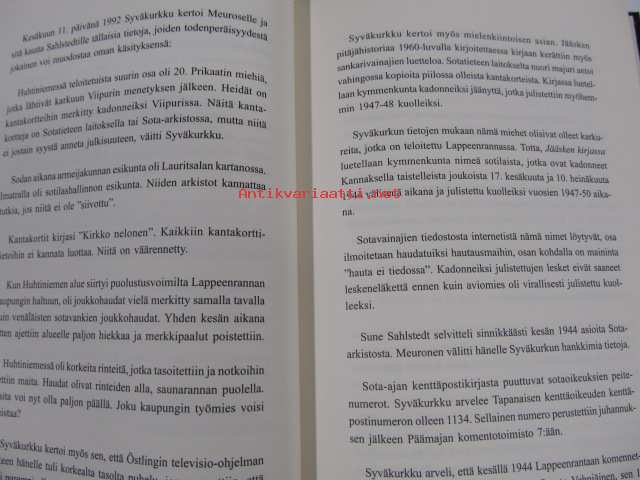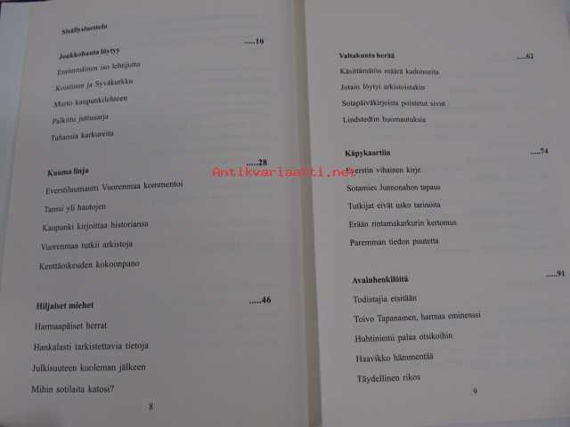 | Saatavilla | 1 kpl | | Julkaisuvuosi | 2006 | | Sivuja | 160 | | Painos | 1. | | Kunto | K3 | | Sidonta/painoasu | Kuvitettu kovakantinen | | ISBN | 952-5170-51-9 | | Kielet | Suomi |