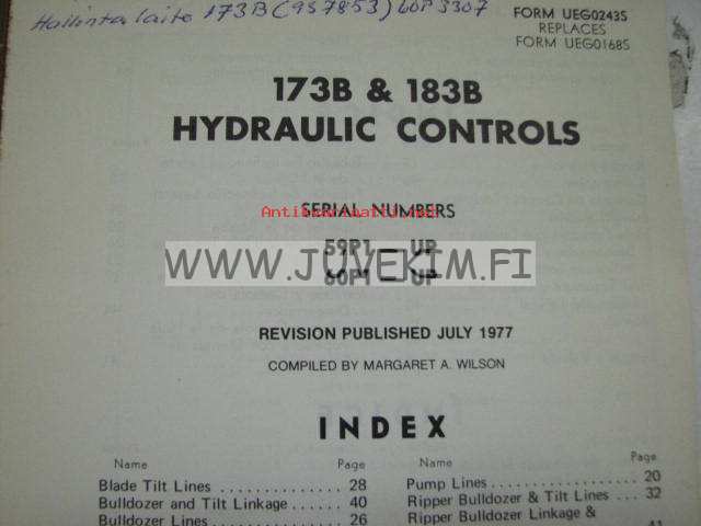 Caterpillar 173B & 183B Hydraulic controls (serial numbers 59P1, 60P1 -up) parts book -varaosaluettelo