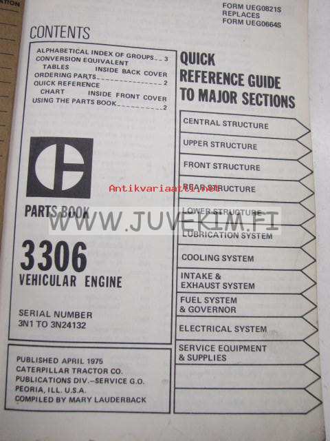 Caterpillar 3306 Vehicular engine 3N1-Up to 3N24132 parts book -varaosaluettelo