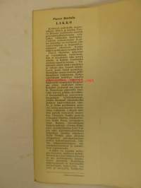 | Saatavilla | 1 kpl | | Julkaisuvuosi | 1956 | | Sivuja | 485 | | Painos | 3 | | Kunto | K3 | | Sidonta/painoasu | Nidottu (pehmeäk.) | | Kielet | Suomi |