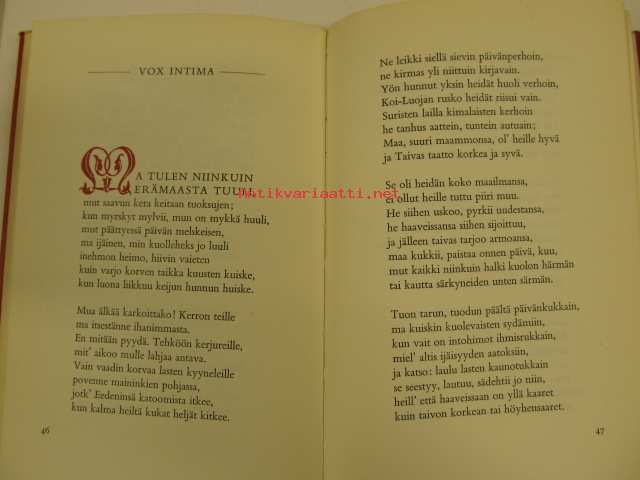 | Saatavilla | 1 kpl | | Julkaisuvuosi | 1954 | | Sivuja | 90 | | Painos | 5. | | Kunto | K4 | | Sidonta/painoasu | Sidottu (kansipaperit) | | Kielet | Suomi |