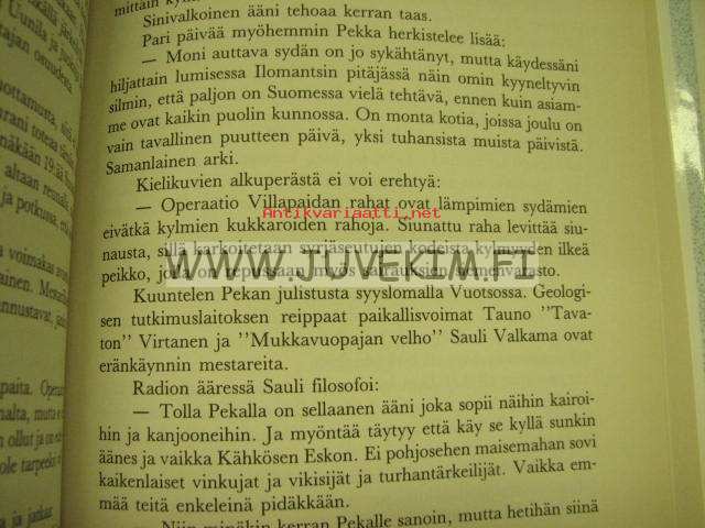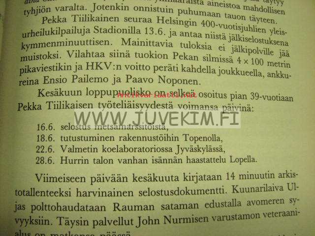 | Saatavilla | 1 kpl | | Julkaisuvuosi | 1987 | | Sivuja | 547 | | Painos | 1. | | Kunto | K3 | | Sidonta/painoasu | Sidottu (kansipaperit) | | ISBN | 951-20-3011-X | | Kielet | Suomi |