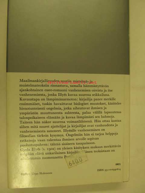 | Saatavilla | 1 kpl | | Julkaisuvuosi | 1979 | | Sivuja | 236 | | Painos | 1. | | Kunto | K4 | | Sidonta/painoasu | Sidottu (kansipaperit) | | ISBN | 951-0-09406-4 | | Kielet | Suomi |
