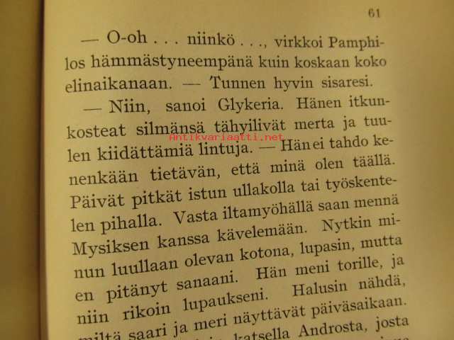 | Saatavilla | 1 kpl | | Julkaisuvuosi | 1939 | | Sivuja | 147 | | Kunto | K2 | | Sidonta/painoasu | Nidottu (pehmeäk.) | | Kielet | Suomi |