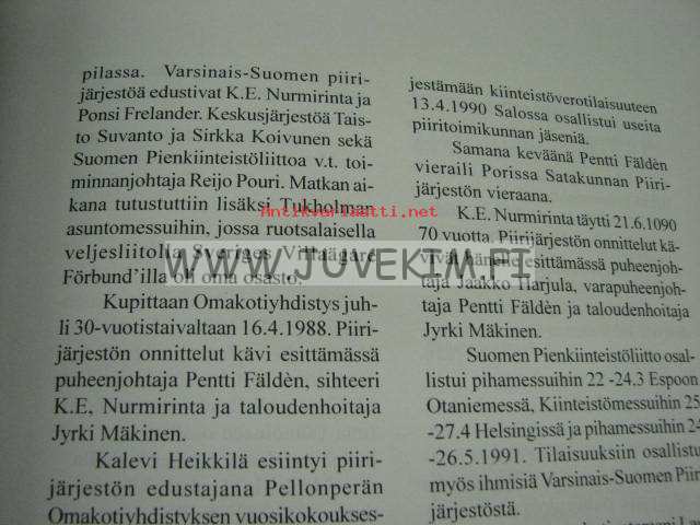 | Saatavilla | 1 kpl | | Julkaisuvuosi | 1999 | | Sivuja | 77 | | Painos | 1. | | Kunto | K3 | | Sidonta/painoasu | Nidottu (pehmeäk.) | | ISBN | 951-595-043-0 | | Kielet | Suomi |