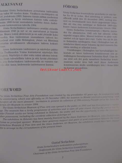 Suomalaista 1800-luvun taidetta Gösta Serlachiuksen taidesäätion kokoelmasta, Amos Andersonin taidemuseo 13.1.-13.3.1994