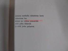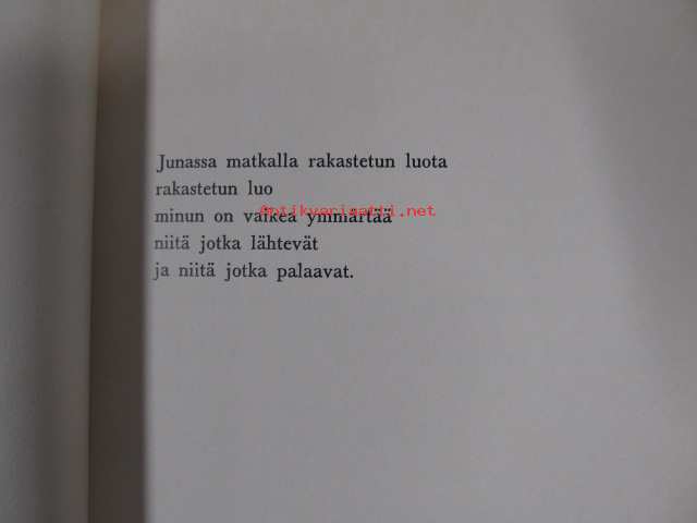 | Saatavilla | 1 kpl | | Julkaisuvuosi | 1974 | | Sivuja | 54 | | Painos | 1. | | Kunto | K3 | | Sidonta/painoasu | Nidottu (pehmeäk.) | | ISBN | 951-35-1114-6 | | Kielet | Suomi |