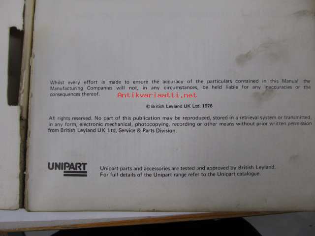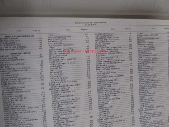 Britsih Leyland, Morris Marina Range-1971 to October 1975 Parts Catalogue -varaosaluettelo