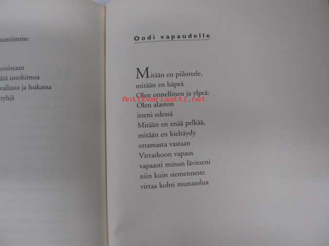 | Saatavilla | 1 kpl | | Julkaisuvuosi | 2000 | | Sivuja | 69 | | Painos | 1 | | Kunto | K4 | | Sidonta/painoasu | Kuvitettu kovakantinen | | ISBN | 951-20-5704-2 | | Kielet | Suomi |