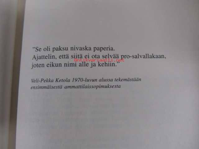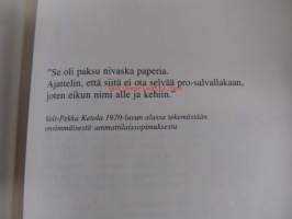 | Saatavilla | 1 kpl | | Julkaisuvuosi | 2001 | | Sivuja | 238 | | Painos | 1. | | Kunto | K3 | | Sidonta/painoasu | Kuvitettu kovakantinen | | ISBN | 952-5170-24-1 | | Kielet | Suomi |
