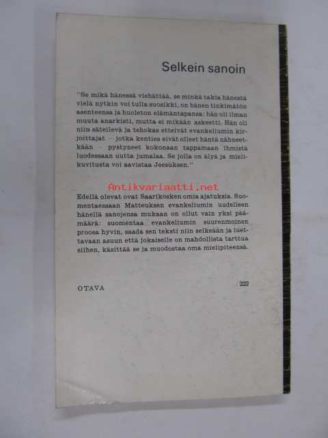 | Saatavilla | 1 kpl | | Julkaisuvuosi | 1969 | | Sivuja | 119 | | Painos | 3. | | Kunto | K3 | | Sidonta/painoasu | Nidottu (pehmeäk.) | | Kielet | Suomi |
