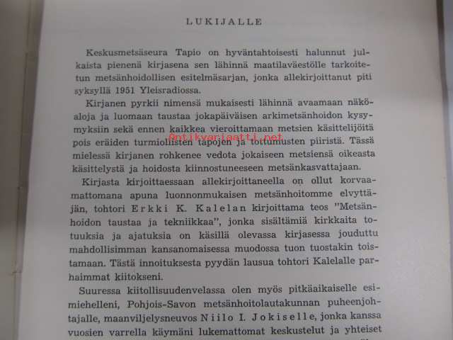 | Saatavilla | 1 kpl | | Julkaisuvuosi | 1953 | | Sivuja | 69 | | Painos | 1. | | Kunto | K3 | | Sidonta/painoasu | Nidottu (pehmeäk.) | | Kielet | Suomi |