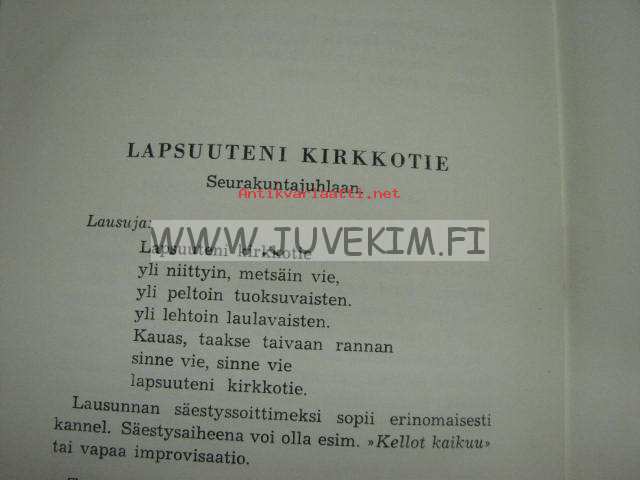 | Saatavilla | 1 kpl | | Julkaisuvuosi | 1953 | | Sivuja | 62 | | Painos | 1. | | Kunto | K2 | | Kirjastoleimoja | | Sidonta/painoasu | Nidottu (pehmeäk.) | | Kielet | Suomi |