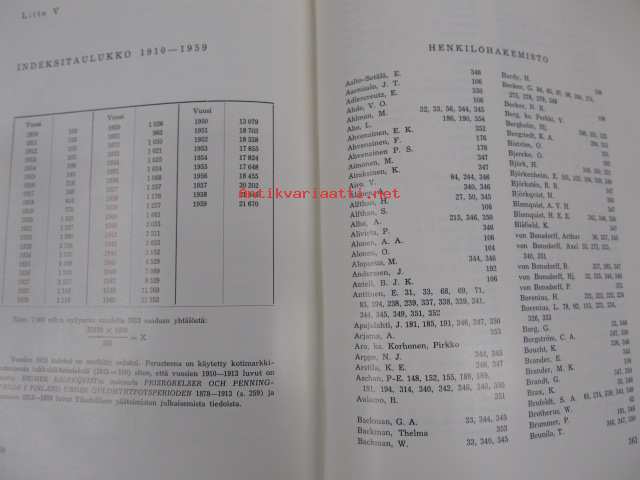 | Saatavilla | 1 kpl | | Julkaisuvuosi | 1960 | | Sivuja | 368 | | Painos | 1 | | Kunto | K4 | | Sidonta/painoasu | Sidottu (kansipaperit) | | Kielet | Suomi |
