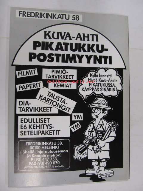 | Saatavilla | 1 kpl | | Julkaisuvuosi | 1994 | | Painos | 1. | | Kunto | K3 | | Sidonta/painoasu | Nidottu (pehmeäk.) | | Kielet | Suomi |