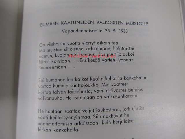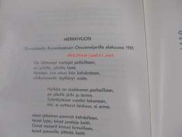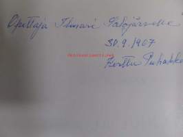 | Saatavilla | 1 kpl | | Julkaisuvuosi | 1967 | | Sivuja | 133 | | Painos | 1. | | Kunto | K3 | | Sidonta/painoasu | Sidottu (kovak.) | | Kielet | Suomi |