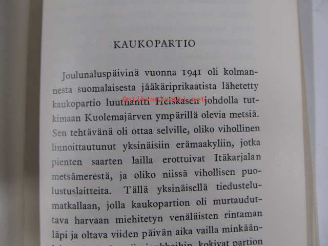 | Saatavilla | 1 kpl | | Julkaisuvuosi | 1958 | | Sivuja | 72 | | Painos | 1 | | Kunto | K3 | | kansipaperit nuhraantuneet | | Sidonta/painoasu | Sidottu (kansipaperit) | | Kielet | Suomi |