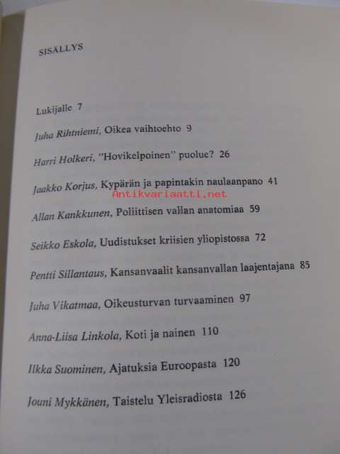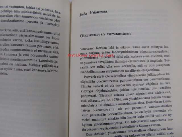 | Saatavilla | 1 kpl | | Julkaisuvuosi | 1970 | | Sivuja | 131 | | Painos | 1. | | Kunto | K3 | | Sidonta/painoasu | Sidottu (kansipaperit) | | Kielet | Suomi |
