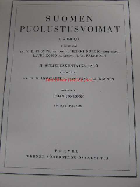 | Saatavilla | 1 kpl | | Julkaisuvuosi | 1931 | | Sivuja | 416 | | Painos | 2. | | Kunto | K3 | | Sidonta/painoasu | Sidottu (kovak.) | | Kielet | Suomi |