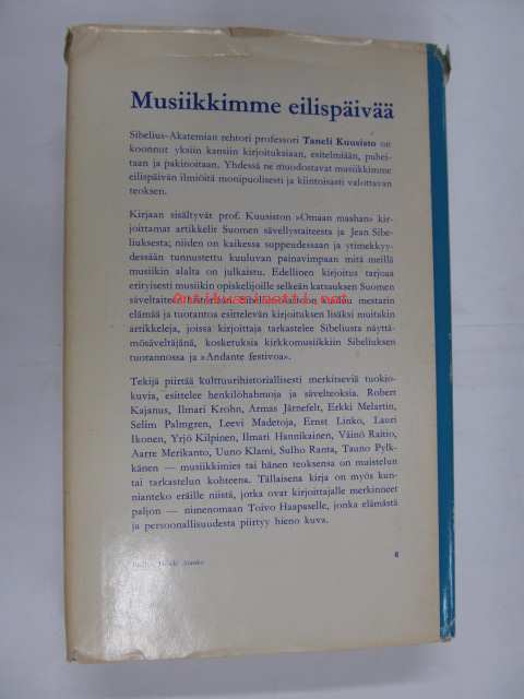 | Saatavilla | 1 kpl | | Julkaisuvuosi | 1965 | | Sivuja | 319 | | Painos | 1 | | Kunto | K3 | | Sidonta/painoasu | Sidottu (kansipaperit) | | Kielet | Suomi |