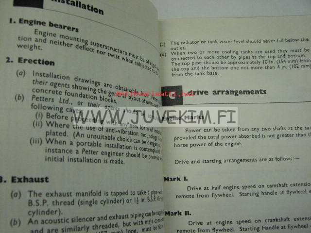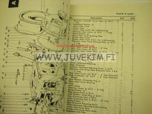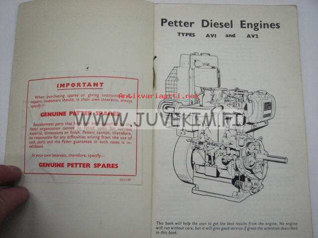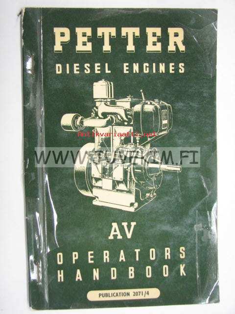 Petter Diesel Engines AV1, AV2 operator´s handbook -käyttöohjekirja, huolto, varaosaluettelo
