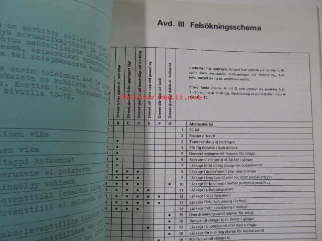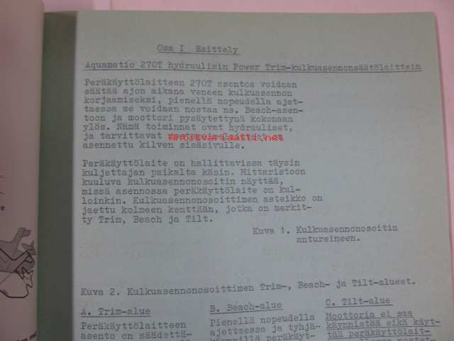 Volvo Penta Aquamatic Internal Power Trim kilpi ja nestepainelaitteet -korjaamokäsikirja, verkstadshandbook