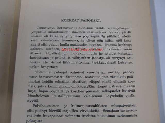 | Saatavilla | 1 kpl | | Julkaisuvuosi | 1953 | | Sivuja | 140 | | Painos | 1. | | Kunto | K2 | | Sidonta/painoasu | Nidottu (pehmeäk.) | | Kielet | Suomi |