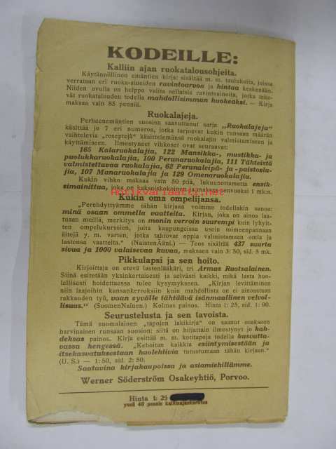 | Saatavilla | 1 kpl | | Julkaisuvuosi | 1916 | | Sivuja | 106 | | Painos | 2. | | Kunto | K4 | | Sidonta/painoasu | Nidottu (pehmeäk.) | | Kielet | Suomi |