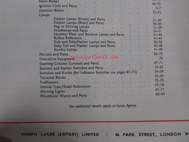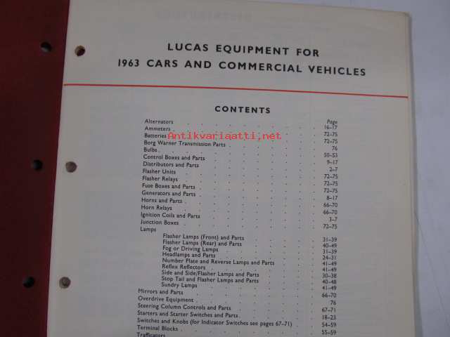 Lucas Equipment 1963 for cars and commercial vehicles -osakuvasto