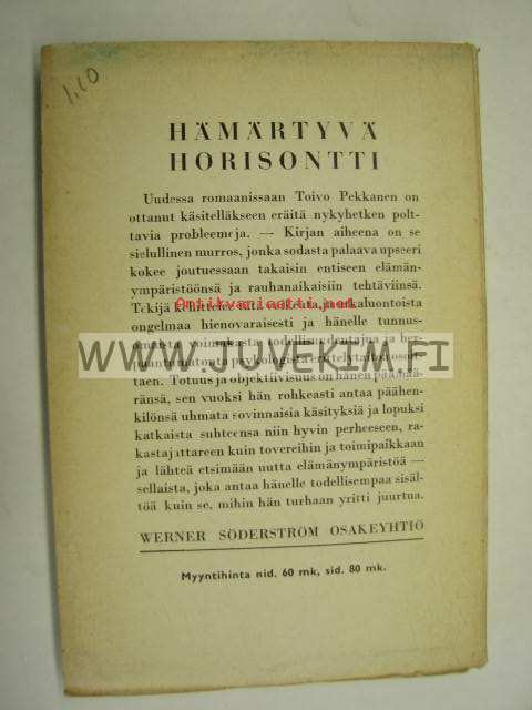 Pekkanen Toivo, WSOY, 194413 x 19 cm kirja.