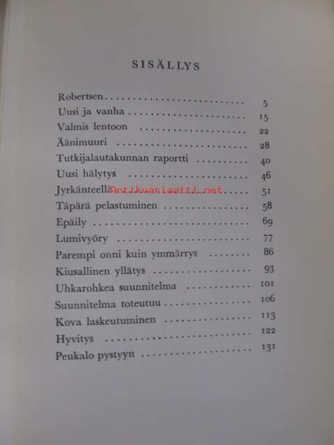 | Saatavilla | 1 kpl | | Julkaisuvuosi | 1961 | | Sivuja | 133 | | Painos | 1 | | Kunto | K3 | | Sidonta/painoasu | Kuvitettu kovakantinen | | Kielet | Suomi |