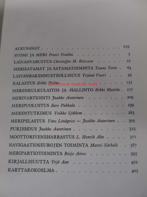 | Saatavilla | 1 kpl | | Julkaisuvuosi | 1962 | | Sivuja | 404 | | Painos | 1. | | Kunto | K3 | | Sidonta/painoasu | Sidottu (kovak.) | | Kielet | Suomi |