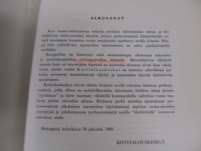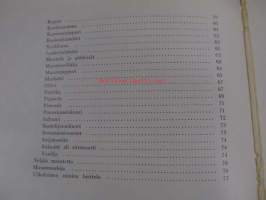 | Saatavilla | 1 kpl | | Julkaisuvuosi | 1960 | | Sivuja | 85 | | Painos | 1. | | Kunto | K3 | | Sidonta/painoasu | Nidottu (pehmeäk.) | | Kielet | Suomi |