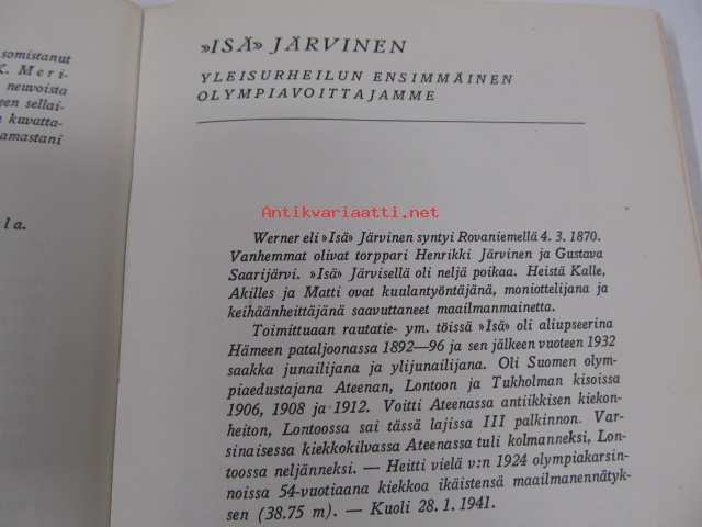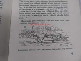 | Saatavilla | 1 kpl | | Julkaisuvuosi | 1944 | | Sivuja | 130 | | Painos | 1. | | Kunto | K2 | | Sidonta/painoasu | Kuvitettu kovakantinen | | Kielet | Suomi |